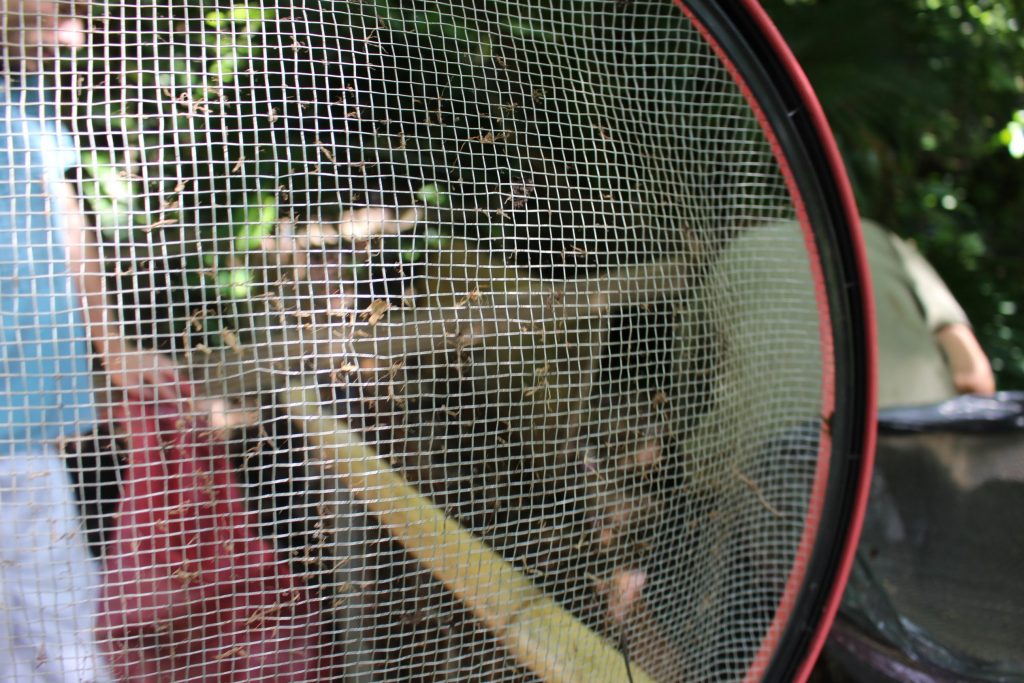 Envolve o recolhimento das folhas e dos galhos do campus para serem colocadas, junto com água, nas áreas de composteira da Estação de Educação Ambiental e da Horta Familiar Orgânica (em cima do telhado do CCE).